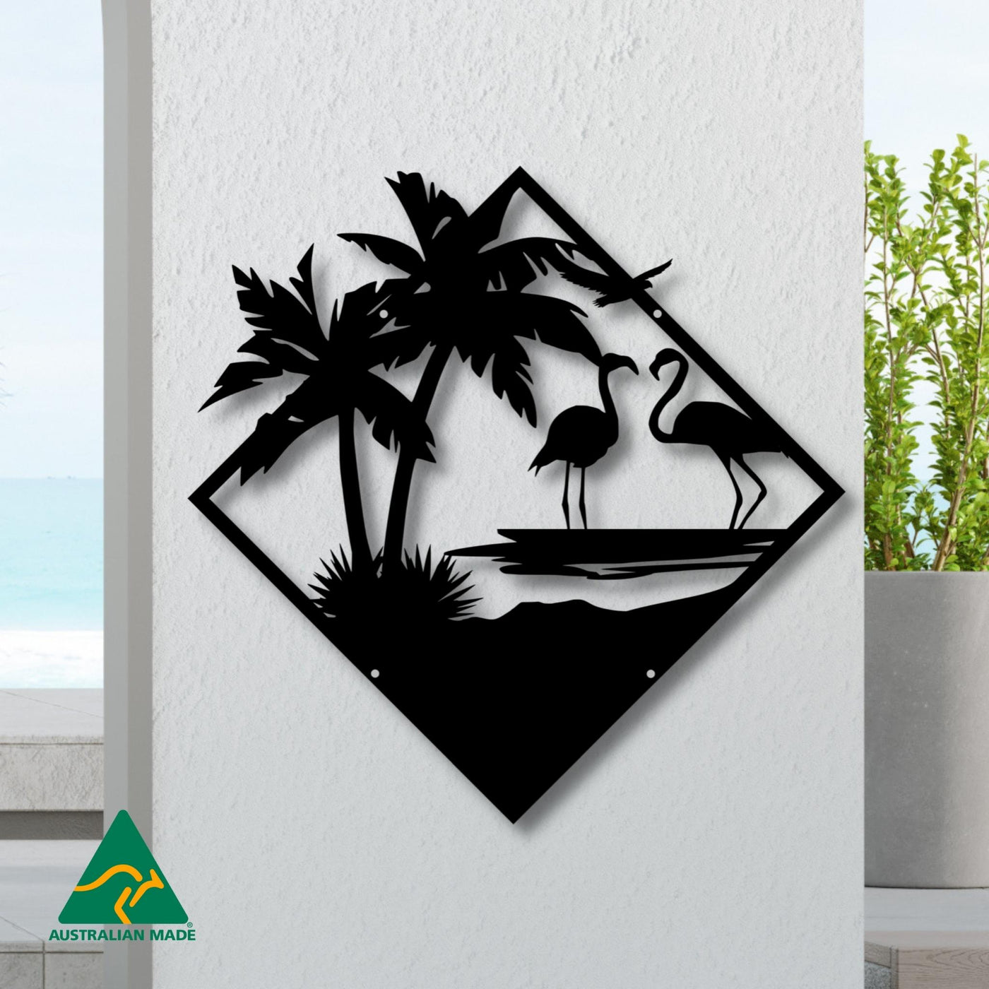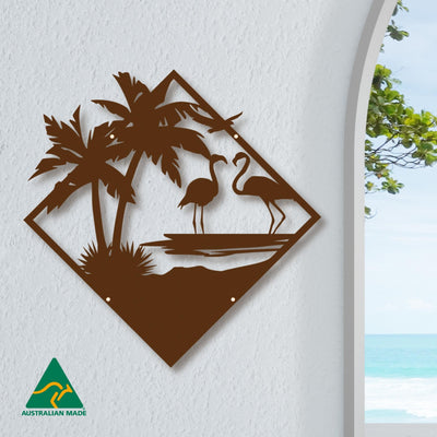 The Flamingo Flock Metal Wall Art | Rust Finish
